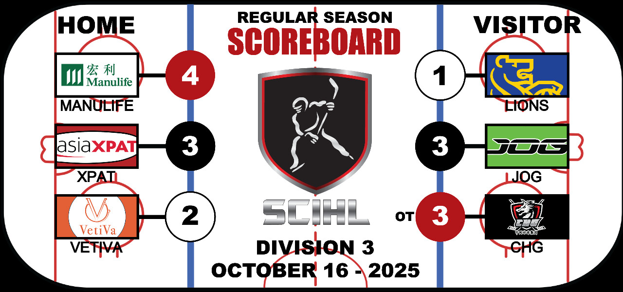 After a scoreless first period, CHG broke through midway in the second when Stephen Levac scored unassisted at 12:52. Just two minutes later, Hans Sham doubled the lead, finishing a setup from Warren Ang and David Finifter to make it 2-0 heading into the third.