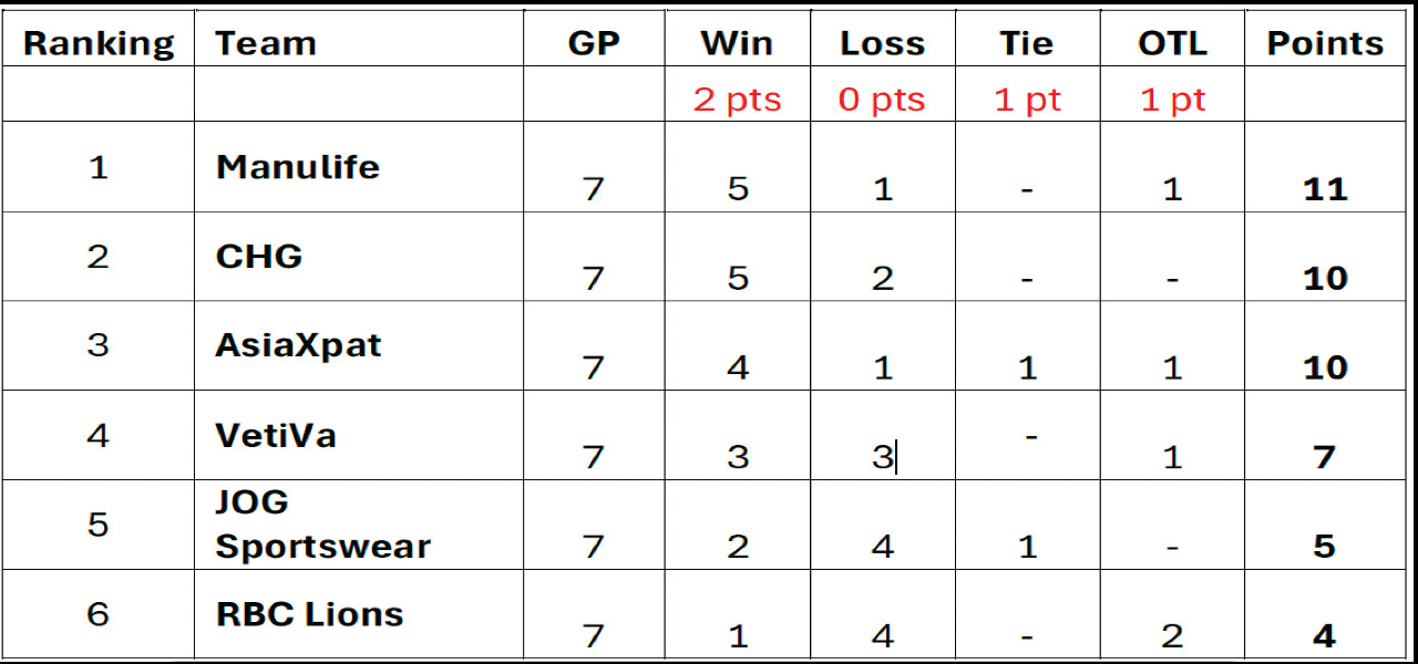 China Hockey Group outlasts Manulife 7-6 in overtime shootout